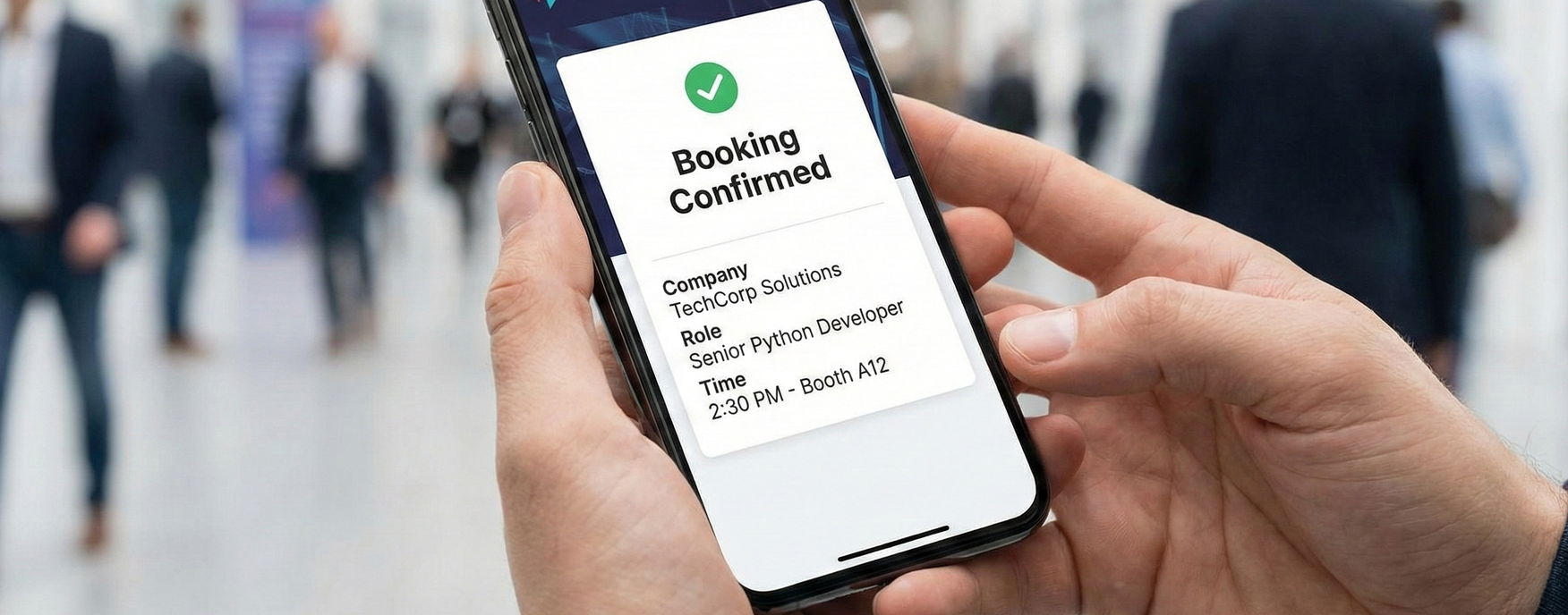 Candidates cannot book random slots. Our event app restricts bookings: candidates can only reserve interview slots with companies hiring for their specific skill set. If you need Python and they know Java, the system blocks the match.